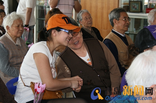 網(wǎng)友和老人握著手攀談 老人看到年輕的網(wǎng)友們來看他們非常高興,扯起網(wǎng)友們的手和他攀談起來,剛剛還陌生的兩群人一下子熱絡(luò)起來。明天是母親節(jié),網(wǎng)友們將大紅色的康乃馨送到了每個(gè)老人的手,老人們接到這鮮艷的花,看到身邊一張張年輕的臉,都綻開了笑顏。 |