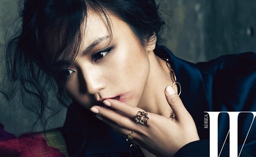 《晚秋》女星湯唯日前為某韓國時裝雜志拍攝一組寫真,抹深紅色口紅,以夢幻、幸福等多樣的眼神展現(xiàn)了性感魅惑的氣息。