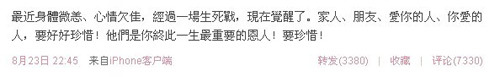 汪小菲更新并轉(zhuǎn)發(fā)了大S的微博,關切地慰問老婆,“老婆最近工作繁忙,身體欠佳。剛回臺北突然暈倒了,送到醫(yī)院。第二天趕來陪她去做檢查。好在只是因為血糖太低引發(fā)昏迷。都是因為我仗著自己年輕,打拼,忽略了生活中最重要的人和事?!?/p>