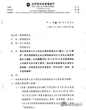大S與汪小菲夫婦通過臺北永然聯(lián)合法律事務(wù)所發(fā)函給張朝陽,要求張朝陽在搜狐網(wǎng)站上向汪小菲夫婦公開道歉并承認錯誤。并表示張朝陽的行為也造成關(guān)心他們的媒體與朋友產(chǎn)生不當?shù)恼`解,造成難以彌補的傷害,并損及名譽權(quán)。