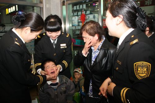 ![]() ????青島新聞網(wǎng)5月7日訊 因為調(diào)皮與母親失散,六歲的謝林潤險些被人販子帶上前往威海的客車,幸虧要找媽媽的哭喊聲引起了交運集團青島長途站工作人員的注意,將其解救后不到20分鐘就送回到了母親身邊。 ????混充阿姨拐騙孩子 被問名字“卡殼” ????5月4日上午10時許,一名中年婦女抱著一名哭鬧的兒童走進了青島長途汽車站的候車廳。孩子的哭聲起初并沒有引起周圍人群的注意,只是以為孩子調(diào)皮不聽媽媽的話,而中年婦女也不斷從自己的紅色綢包中拿出零食和玩具塞給孩子?!皨寢專乙覌寢?!”當(dāng)工作人員陳美佳走過兩人身邊時,卻聽到孩子不斷哭喊著要找媽媽,而中年女子用著很不標(biāo)準(zhǔn)的普通話回應(yīng)說:“媽媽在威海,阿姨帶你去找媽媽!” ????這可引起了陳美佳的注意,孩子身邊的女人是誰?于是她立刻主動走上前去詢問有什么可以幫忙的,而陳美佳的主動詢問讓中年女子有些驚慌,不斷重復(fù)著說她是孩子的阿姨,要帶孩子去威??磱寢專欢?dāng)美佳問到孩子叫什么時,這名女子開始“卡殼”,一會說叫帥帥,一會說叫王東,并表示自己馬上要上車了,說完拉起孩子就朝檢票口走去。 ????塞零食哄騙孩子 被察覺后偷偷溜走 ????然而中年婦女的一個舉動又引起了陳美佳的注意,孩子不斷在哭喊,可是這名婦女卻不斷往孩子嘴里塞零食,還用手捂住孩子的嘴不讓其將食物吐出來??吹竭@種情況,陳美佳立刻悄悄告知了檢票人員不要為這名婦女檢票,然后自己再次走上前去迅速拉住孩子的手,告訴中年婦女因為車輛故障暫時無法發(fā)車,可以去特需旅客休息室休息等候。 ????也許是看到了不少旅客都上車了而自己卻不能上車,這名中年婦女有所覺察,便跟陳美佳說自己要再去買點東西,幫自己照顧一下孩子,然后迅速離開了候車廳。 ????失散兩個多小時終見面 ????陳美佳將孩子帶到了特需旅客候車室后迅速將情況告訴了駐站民警,經(jīng)過長時間的安撫,孩子的情緒才穩(wěn)定下來不再哭鬧。經(jīng)過詢問,原來孩子名叫謝林潤,今年六歲,是跟著自己的媽媽來到車站準(zhǔn)備回自己的老家無棣的,可是在媽媽買票的時候,自己跑到了車站外花壇玩耍,當(dāng)再回到售票廳時候,媽媽已經(jīng)不見了,于是他跑到車站外尋找卻沒有找到,于是蹲在地上開始大哭。而拉著自己坐車的那名中年婦女當(dāng)時告訴自己看到媽媽去了威海,可以帶他去威海找媽媽,他才跟一起著走的,那名婦女還叮囑說,要是別人問就說她是自己的阿姨。 ????在了解事情的真相后,車站的服務(wù)臺立刻開始不間斷廣播,希望小潤潤的母親能夠聽到,車站的工作人員還將小潤潤帶到了監(jiān)控中心,讓其在監(jiān)控畫面中找尋自己的母親。找了十多分鐘,小潤潤終于在車站迎客廳正對馬路的攝像頭拍攝的畫面中看到了自己的母親,工作人員立刻趕往迎客廳找到了已經(jīng)情緒激動、逢人便問有沒有看到自己孩子劉女士,失散兩個多小時的母子二人也終于相見了。激動不已的媽媽一把摟住了自己的兒子,失聲痛哭了起來,當(dāng)?shù)弥獌鹤硬铧c被拐走時,劉女士嘴里不停地感謝著車站的工作人員,“謝謝你們,多虧了你們幫忙,要不我真的不知道該怎么辦了?!保ㄇ鄭u新聞網(wǎng)記者 孫璐璐 通訊員 李男) |