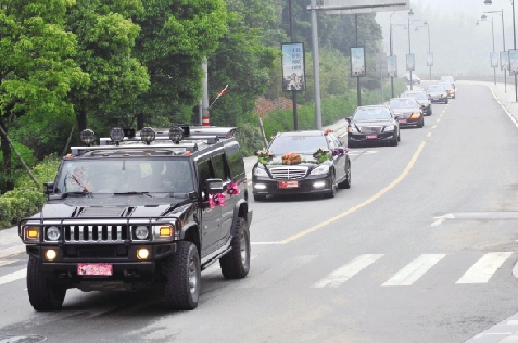 豪華的婚車隊(duì)(盛高 攝) 浙江在線05月09日訊 九龍湖的“百萬婚禮”,昨天在甬城成了熱門詞。開席128桌,餐飲費(fèi)就高達(dá)130萬,包場五星級酒店,無論是開銷,還是氣派,堪稱寧波近年來之最。 “百萬婚禮”經(jīng)本報(bào)昨天報(bào)道后,在網(wǎng)絡(luò)上也引發(fā)了討論。大家都很好奇,超豪華婚禮究竟是什么樣的?昨天,本報(bào)記者也到現(xiàn)場體驗(yàn)了一番。 “百萬婚宴”的舉辦地,是寧波開元九龍湖度假村。記者趕到酒店的時候,還不到下午三點(diǎn),一輛輛大巴陸續(xù)過來,都是新人的親戚朋友,聽著大多是濃重的慈溪口音。 下午4點(diǎn)左右,酒店門口慈溪車牌的豪車開始多起來。一輛浙B牌照的路虎剛停下,一堆人迎了上去,原來是男方的父母到了,男方的媽媽還穿了一件紫紅色的旗袍。不少人向她招手喊:“老板娘來了。喲,真漂亮!” 過了半小時,酒店的主道前,鞭炮聲此起彼伏,拿著煙火棒的幾名工作人員互相遞了眼色:新人到了。 一輛黑色的悍馬開道,先下了攝錄人員。之后,清一色的S600的奔馳婚車陸續(xù)開到門口。一對新人下車,看上去年紀(jì)不大?!?0輛S600,300多萬一輛,厲害……”幾名參加婚禮的90后忙不迭地拿起了手機(jī),拍下了婚車的場景。 賓客大呼:婚宴獎品最給力 昨天的“百萬婚宴”,開了128桌,動用了酒店的五個廳,除了部分親友,出席的還有當(dāng)?shù)氐恼缑鳌?/p> 婚禮以激光舞領(lǐng)銜開場;業(yè)界有名的司儀寒冬作主持;表演環(huán)節(jié)請的是寧波有名的魔術(shù)師;證婚人也很重量級,是慈溪當(dāng)?shù)氐囊晃活I(lǐng)導(dǎo)。據(jù)他介紹,男女新人目前在慈溪同一家公司工作,從事建筑生意。 來自慈溪的小陳,一邊聽著介紹,一邊和同桌研究起了桌子的酒水:“茅臺市價2000多元,葡萄酒也是500元左右的,128桌一算,光酒水就花了20多萬元呢。” 幸運(yùn)獎是288元的超市卡,每桌三張,128桌就花11萬多。而接下來的獎項(xiàng),讓不少坐在過道的人,都擠到了主廳。 三等獎是28臺尼康相機(jī),二等獎是18臺16G的iPad2,而一等獎是8臺聯(lián)想的ThinkPad筆記本電腦。記者粗算了下,三個獎項(xiàng)一加,獎品就超過了20萬元。 “比我們的年會還給力,中獎率太高了……”拿著一臺iPad2走下領(lǐng)獎臺的陳小姐一回到餐桌,同桌的人都起哄了。 昨天的特等獎在晚上8點(diǎn)出爐,新人直接拿出了9999元的現(xiàn)金,最終被男方的初中同學(xué)拿走。 過道的婚宴桌,賓客走得比較早,但宴席后,也有一部分人還在打包?!斑@么好的東西,別浪費(fèi)了。” 婚宴結(jié)束后,不少賓客還在酒店拍照留念,嘴里不住喃喃自語:“有錢人啊……” 網(wǎng)友反響:有的羨慕有的認(rèn)為炫富 昨天,九龍湖的“百萬婚禮”,也成了微博的熱議話題。 不少網(wǎng)友網(wǎng)上直播婚宴現(xiàn)場,獎品環(huán)節(jié)也引發(fā)了不少人的圍觀。 “wototo”:“有錢銀羨慕不起,我只關(guān)心是不是每人發(fā)一萬……” 網(wǎng)友“多拉愛夢之戀”:“有錢就有創(chuàng)意,有錢就有架勢?!?/p> 對于婚禮的花銷,不少人覺得有“炫富”嫌疑。 網(wǎng)友“Laura劉ss”:“200萬的婚禮,能讓多少孩子有書念?能讓多少獨(dú)居老人安享晚年?能讓多少困難家庭生活得好些?燒錢啊……” 網(wǎng)友“EZ_flyingaway”說:“朱門酒肉臭,路有凍死骨。獎品就搞20多萬,搞那么氣派,還不如救助窮人呢?!?/p> 也有一些網(wǎng)友表示:“這就是一場撒錢的婚禮,投胎是技術(shù)活啊,羨慕不來的?!?/p> |
