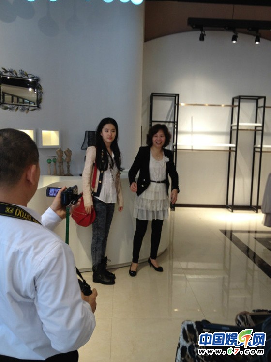 劉亦菲參觀服裝公司 干爹陳金飛全程陪同親密隨行