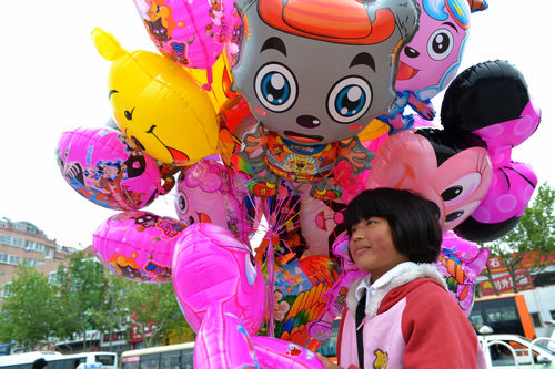 鈺婷“生意”不錯(cuò) 不遠(yuǎn)處,爸爸媽媽在那里賣風(fēng)箏 不回老家過年 在李村公園入口處,記者見到了姐弟倆的爸媽。他們靜靜地站在那里,面前擺著一堆風(fēng)箏、玩具。如有客人詢價(jià),他們的臉上立刻堆滿笑容,耐心討價(jià)還價(jià)。 媽媽龔女士告訴記者,他們一家四口來自菏澤鄉(xiāng)下,鈺婷、鈺杰3歲時(shí),他們就來到了青島,如今孩子們已經(jīng)10歲。這7年里,除了大人偶爾回老家探望老人,兩個(gè) 鈺婷也是這么認(rèn)為的,根據(jù)她的“經(jīng)驗(yàn)”,春節(jié)的時(shí)候,大家都喜歡出來玩,孩子們手里有壓歲錢,是一年中賣得最好的時(shí)候。最多的一次,她一天賣了將近一百個(gè)。 記者問鈺婷:“你過年有沒有壓歲錢?”她又低下了頭不說話。媽媽在一旁不好意思地說:“她過年,沒有壓歲錢,沒有新衣服,現(xiàn)在身上穿的這件衣服,還是好心人送的呢?!?/p> 鈺婷、鈺杰的生日是10月6日,10歲以來,從未吃過生日蛋糕。媽媽說:“每次過生日,能吃個(gè)雞蛋就不錯(cuò)了。” |