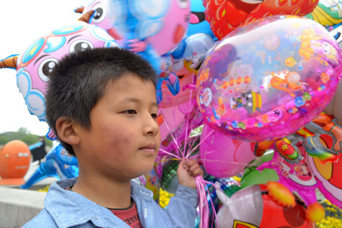 李村公園小姐弟風(fēng)雨中賣氣球 10歲肩膀撐起一個(gè)家