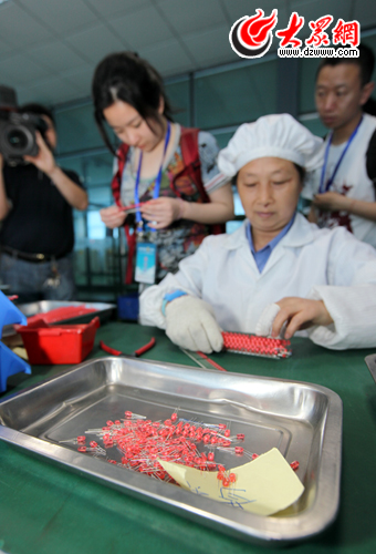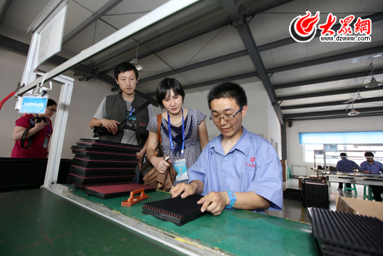 ![]() 采訪團(tuán)記者在生產(chǎn)車間內(nèi)參觀采訪。(盛堃 攝影)
