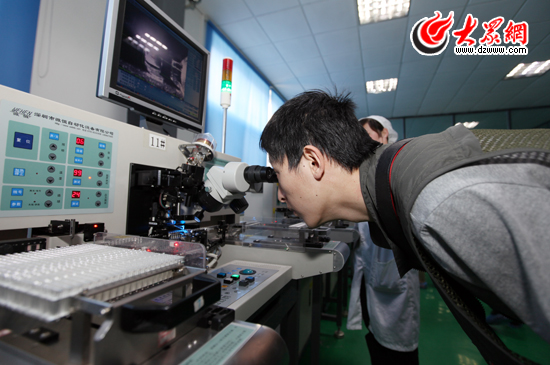![]() 通過顯微鏡觀看生產(chǎn)中的細(xì)微之處。(盛堃 攝影) ????大眾網(wǎng)聊城5月14日訊 ????新能源有“潔癖” 出廠之前都要“老化” ????下午3時(shí)許,采訪團(tuán)一行來到聊城市燎原光伏產(chǎn)業(yè)園,正當(dāng)記者們滿懷好奇,準(zhǔn)備進(jìn)入車間一探新能源的“尊榮”時(shí),卻被園區(qū)工作人員攔了下來,“請(qǐng)穿上鞋套。”進(jìn)車間還要穿鞋套,這是為何?正當(dāng)記者迷惑不解時(shí),園區(qū)工作人員笑著說,“新能源、新科技都是有‘潔癖’的,一會(huì)兒你就能看到。” ????果不其然,走進(jìn)車間后,記者看到,偌大的草綠色地板光潔明亮,一塵不染,清晰地能照出人影,在車間工作的技術(shù)人員也穿著白色的外套,帶著白色的帽子,甚至手腕上還帶著一個(gè)去除靜電的手環(huán)?!靶履茉窜囬g必須保持清潔,不能有漂浮的灰塵,更不能有靜電,以防灰塵進(jìn)入燈珠內(nèi)。” ????工作人員所說的燈珠就是LED顯示屏上的一顆顆發(fā)光體,也是燎原光伏產(chǎn)業(yè)園的主要產(chǎn)品,“我們從大街上能夠看到的每一塊顯示屏都是有這個(gè)組成的,而江北絕大多數(shù)的顯示屏是從燎原走出的?!惫ぷ魅藛T介紹說,為了保證質(zhì)量,每一塊LED顯示屏在出廠之前都要“老化”?!皠e的產(chǎn)品大多是越新越好,越?jīng)]用過越好,但我們的LED顯示屏在出廠前必須連續(xù)照明72小時(shí),讓它‘老化’,如果沒有問題,才能上市銷售,我們市民在平常使用時(shí)才能放心、安心?!?/p> ????三年打造“亞洲之最” 四年追求“全球之最” ????行走一圈后,記者發(fā)現(xiàn),曾經(jīng)晦澀難懂、感覺遠(yuǎn)在天邊的新技術(shù)、新材料其實(shí)并不遙遠(yuǎn),它們有的變身常用的照明燈、有的變成LED電視顯示屏,有的是汽車的轉(zhuǎn)向燈,還有的是收集日光的路燈……每一種新技術(shù)、新能源都與我們近在咫尺,與我們的生活息息相關(guān)。 ????工作人員告訴記者,燎原光伏產(chǎn)業(yè)園由山東燎原發(fā)光科技有限公司前期投資4.8億元啟動(dòng)建設(shè),項(xiàng)目占地1000余畝,整個(gè)園區(qū)分LED應(yīng)用、LED封裝、LED芯片三期建設(shè)。目前一期、二期已經(jīng)建成投產(chǎn),每年可產(chǎn)各類LED燈珠24.6億顆、100萬平方米LED顯示屏模組、20萬平方米LED顯示屏、200萬套LED照明燈具,產(chǎn)能和技術(shù)均居國內(nèi)先進(jìn)水平。 ????在燎原光伏產(chǎn)業(yè)園生產(chǎn)車間的墻壁上,有一排藍(lán)色的大字吸引了記者的注意,“這句話是我們的近期目標(biāo):3年內(nèi)的打造亞洲最大LED顯示屏研發(fā)基地。除了這個(gè),我們還要爭(zhēng)取在2015年上市,在2016年成為全球最大的LED封裝研發(fā)生產(chǎn)基地?!庇浾咴诓稍L中了解到,這一目標(biāo)其實(shí)并不遙遠(yuǎn),目前以高新技術(shù)為支撐的燎原光伏產(chǎn)業(yè)園也成為了聊城“一五二”基地的組成部分,是聊城市正著力培植的生物醫(yī)藥、新能源、高端制造和節(jié)能環(huán)保等四大戰(zhàn)略性新興產(chǎn)業(yè)之一,“我們企業(yè)員工都相信有政府的扶持,有我們企業(yè)自身的努力,這一目標(biāo)一定能實(shí)現(xiàn)?!辈稍L中,一位在插件機(jī)工作的員工小劉笑著告訴記者。 |