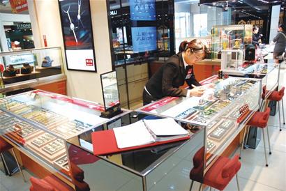 “當(dāng)下的價格與去年同期基本持平,1年過去,金價又回落到原來水平?!崩蛠睃S金珠寶公司于經(jīng)理告訴記者,去年五一后價格也是在360元/克水平。金價下降,令前往珠寶店購買金飾的市民增多。在投資金條方面,進(jìn)店咨詢的顧客也增多,但有的顧客擔(dān)心金價仍會下調(diào),持觀望態(tài)度。業(yè)內(nèi)人士梁女士說,在目前的價格平臺上,金價會穩(wěn)定一段時間,短期看繼續(xù)下跌的可能性不大。(記者 劉文劍 攝影報(bào)道)