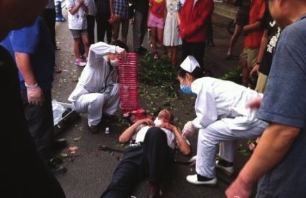 “糟了,有人跳樓了!”周?chē)藴愡^(guò)去一看,發(fā)現(xiàn)這個(gè)人原來(lái)是后面宿舍的王德勇(化名)大爺。他頭部雖然一直在流血,但意識(shí)很清醒,還能開(kāi)口說(shuō)話(huà):“后面有人用機(jī)關(guān)槍打我!后面有人追我!”