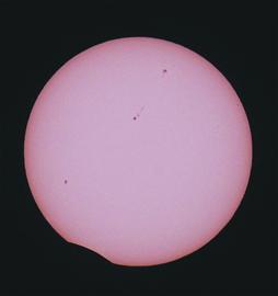 ????昨天早晨,很多青島市民在忙著上班上學(xué)的時候,頭頂上正在悄悄上演著日偏食奇觀。從昨天早晨5時23分到7時39分,一個多小時的時間里,太陽慢慢變成“金鉤”又慢慢復(fù)原。本報記者和青島觀象臺的專家們趕赴即墨海邊拍下了整個日偏食的過程。