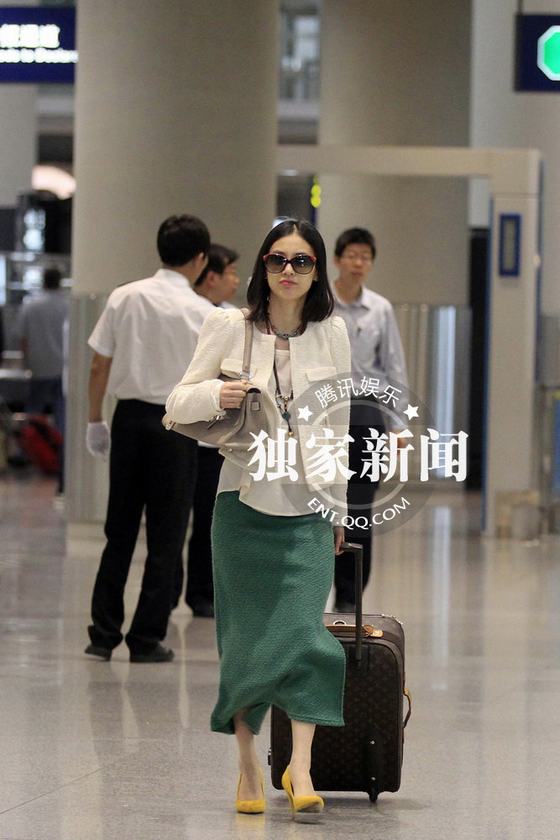 黃圣依白衣綠裙墨鏡遮臉