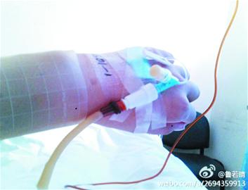 ????魯若晴,一個23歲的膠南女孩,今年1月份查出患白血病,已經到了晚期,醫(yī)生稱她生存的機會渺茫。她曾赴北京協和醫(yī)院治療,醫(yī)生給出的治療方案是化療加干細胞移植。今年2月份她進行了三期化療,二期效果比一期稍好一些,三期各項指標符合配型要求,她與哥哥的干細胞配型成功。原本今年3月份繳納40萬元的手術費,就可以進行移植,病情或會帶來轉機。但在經過痛苦的化療過程后