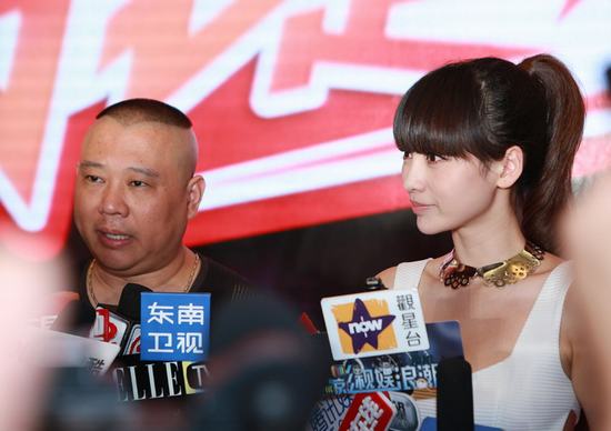 柳巖深V桃心開背裝亮相 秀豪乳與郭德綱親密互動(圖)
