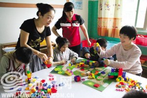 因?yàn)槭请p休日,大多孩子被家長接回去了,剩下的十幾個孩子正在玩玩具。