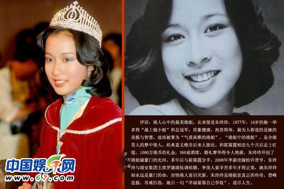 天生麗質(zhì)的朱玲玲出生在緬甸。9歲的時(shí)候和父母移居香港,因?yàn)闃O有語(yǔ)言天賦,朱玲玲在學(xué)校很快就學(xué)會(huì)了廣東話(huà)和英語(yǔ)。美麗再加上聰穎,使得她很引人注目。1977年,只有17歲的朱玲玲參加了香港最負(fù)盛名的“香港小姐選美大賽”,一舉奪得了“最上鏡小姐”和總冠軍,成為香港小姐史上第一個(gè)雙料冠軍。朱玲玲以她的美貌和智慧,被人稱(chēng)為“氣質(zhì)高雅的港