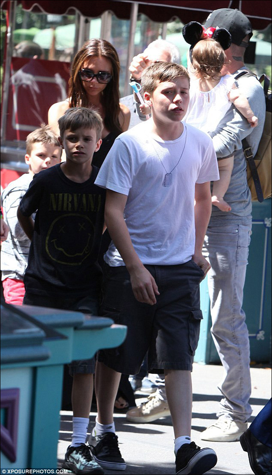 貝克漢姆抱兒女逛迪士尼 小哈波頭戴米妮發(fā)卡賣萌(圖)