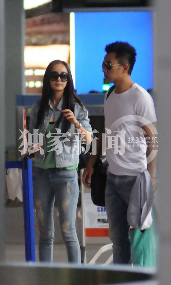 楊冪劉愷威情侶裝現(xiàn)身機(jī)場 楊冪摘墨鏡安檢素顏憔悴