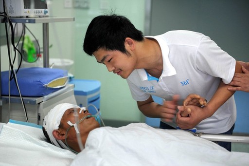 6月8日,沈飛握著父親的手,說自己考得不錯。