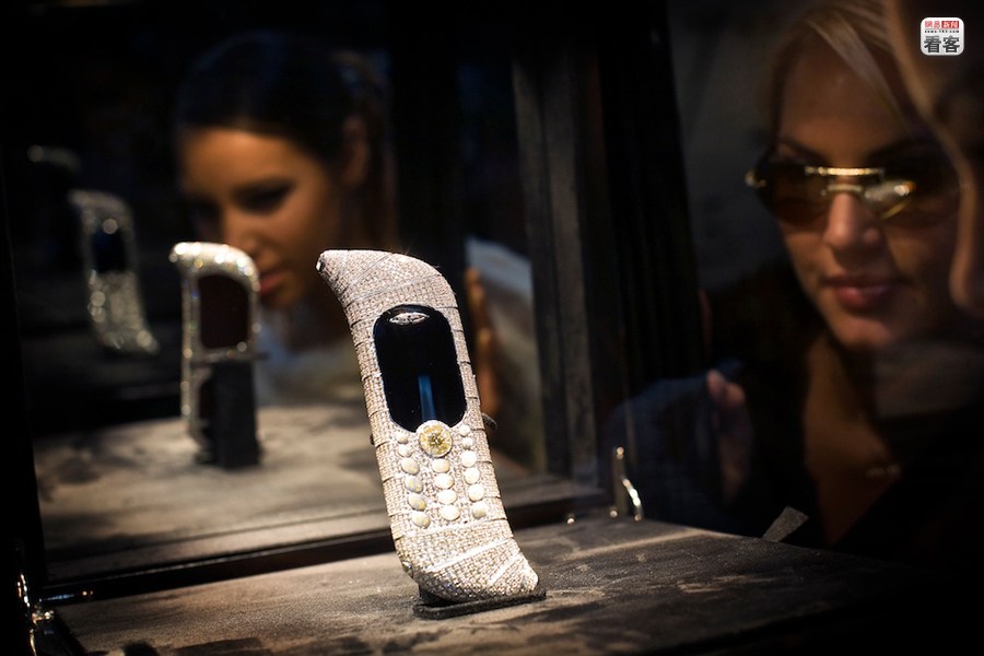 展銷會(huì)上還展出了一部號(hào)稱“世界最昂貴的手機(jī)”——它由瑞士一家公司制造,售價(jià)高達(dá)100萬美元。這部手機(jī)機(jī)身由140克白金鑄成,每個(gè)按鍵都鑲嵌有一顆鉆石,總重量達(dá)100克拉。