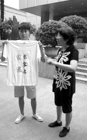 場(chǎng)外,反家暴者表明立場(chǎng)
