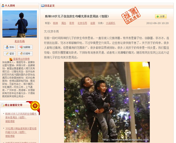 網(wǎng)曝陳坤兒子生母為一線女星 網(wǎng)友猜測(cè)疑Z姓女星(圖)