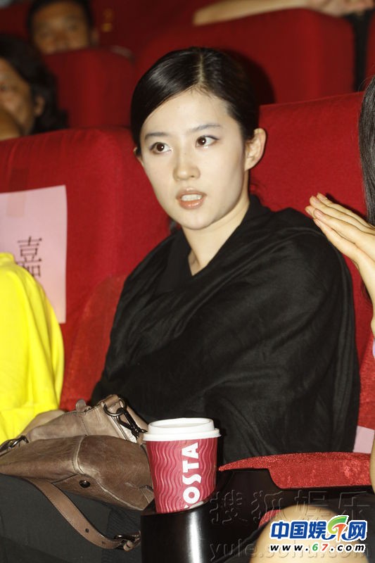 劉亦菲黑衣現(xiàn)身為同學(xué)捧場 心情大好狂贊新人(組圖)
