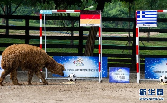 6月21日,天津“神獸”羊駝“大胖”預(yù)測(cè)德國(guó)淘汰希臘進(jìn)入半決賽。當(dāng)日,被稱(chēng)為天津“神獸”的羊駝“大胖”預(yù)測(cè)德國(guó)隊(duì)和意大利隊(duì)分別淘汰希臘隊(duì)和英格蘭隊(duì)進(jìn)入歐錦賽半決賽。天津市動(dòng)物園在2012年歐錦賽中策劃了羊駝“大胖”預(yù)測(cè)比賽結(jié)果的活動(dòng),羊駝“大胖”在7場(chǎng)小組賽預(yù)測(cè)中,成功猜中6場(chǎng)比賽結(jié)果,命中率極高,被稱(chēng)為天津“神獸”,堪比南非世界杯中預(yù)測(cè)比賽結(jié)果的章魚(yú)“保羅”。 |