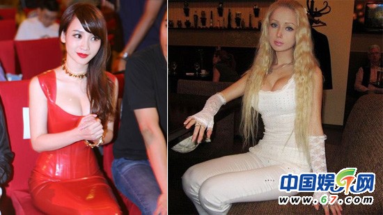 柳巖狠擠爆乳勒細腰 PK烏克蘭真人芭比娃娃(組圖)