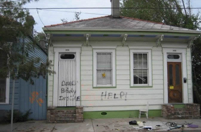 這張寫(xiě)著死亡和求助信息的照片展現(xiàn)了卡特里娜颶風(fēng)的殘酷。這張照片說(shuō)明即使是世界上最強(qiáng)大的國(guó)家,在自然力量面前也無(wú)能無(wú)力。人類(lèi)在面對(duì)自然時(shí)沒(méi)有國(guó)界的區(qū)別。