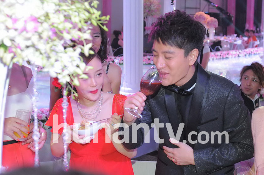 李小璐寬松紅裙突顯孕相 賈乃亮頻頻敬酒舉杯豪飲(圖)