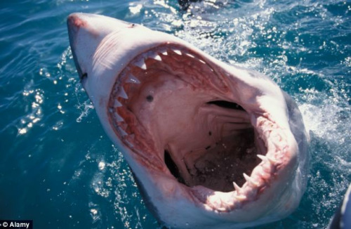 攝影師拍攝到大白鯊“血盆大口”。