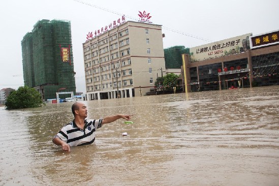 7月13日,武漢遭遇特大暴雨襲擊,一名男子在齊胸的水中。