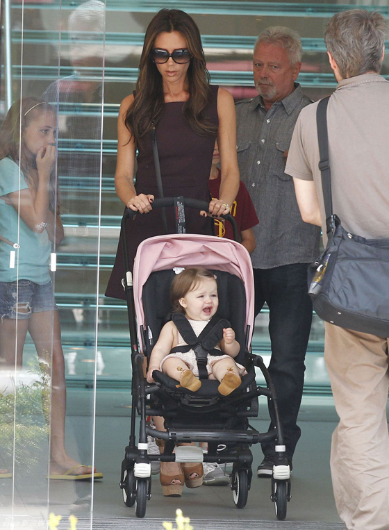 貝嫂維多利亞攜子女出行 小七肥嘟嘟可愛