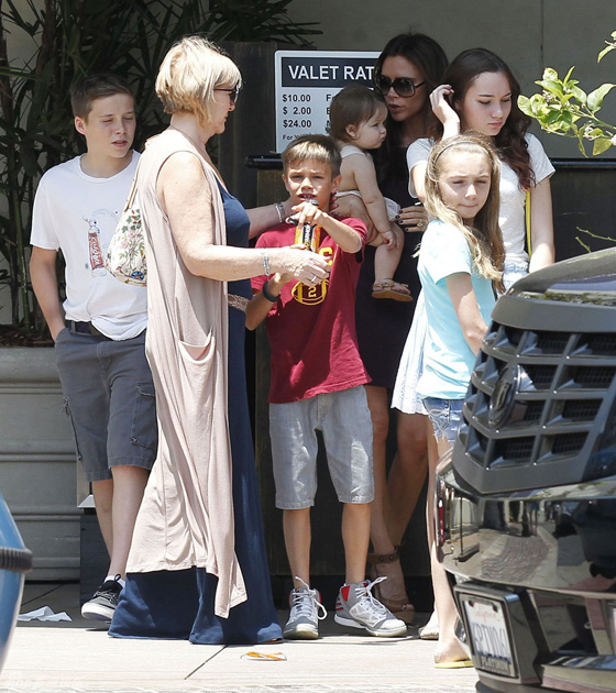 貝嫂維多利亞攜子女出行 小七肥嘟嘟可愛
