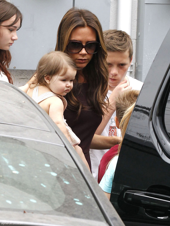 貝嫂維多利亞攜子女出行 小七肥嘟嘟可愛