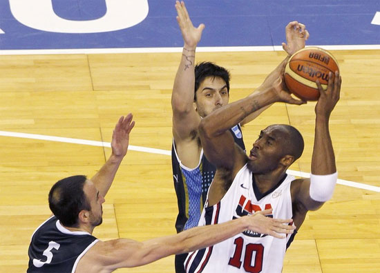 ??? 北京時(shí)間7月23日凌晨,美國奧運(yùn)男籃同阿根廷上演重量級(jí)熱身賽對(duì)抗,最終美國隊(duì)86-80奏凱,取得熱身賽4連勝。杜蘭特砍下全場(chǎng)最高分27分,另有3助攻3籃板;科比18分4籃板,詹姆斯15分7籃板5助攻,韋斯特布魯克13分;吉諾比利為阿根廷得到23分,德爾菲諾15分5助攻,斯科拉14分7籃板4助攻。