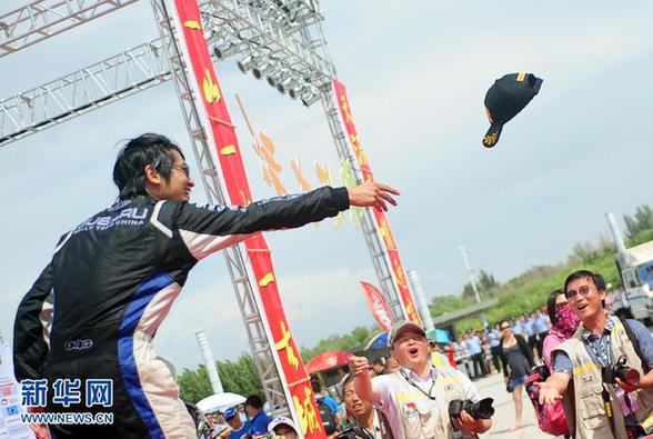 7月23日,韓寒在領(lǐng)獎后將帽子拋給支持者。當(dāng)日,2012年“絲路春”杯(張掖)中國汽車?yán)﹀\標(biāo)賽閉幕,斯巴魯拉力車隊(duì)車手韓寒與領(lǐng)航員孫強(qiáng)以0.27秒的優(yōu)勢奪得冠軍。