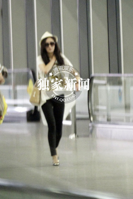 楊冪素顏潮裝出行 機場當眾整理內衣不懼偷拍(組圖)