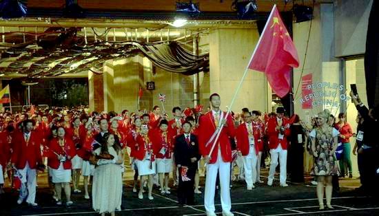 ????在男籃名將易建聯(lián)的帶領(lǐng)下,中國體育代表團(tuán)第42個進(jìn)入主體育場。他們身著紅黃相間的上衣,女士身著白色裙子,男士則穿著白色長褲,精神抖擻。出現(xiàn)在大部隊(duì)中的有中國柔道隊(duì),擊劍隊(duì)、乒乓球隊(duì)等等,名
