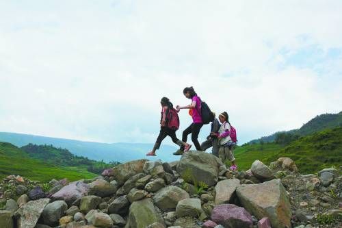 我們問(wèn)一個(gè)小女孩,這么危險(xiǎn)你怕不怕?她說(shuō)不怕,經(jīng)常走也習(xí)慣了,這些雖然很苦,但是上學(xué)更有意思,至少比在家割豬草有趣。
