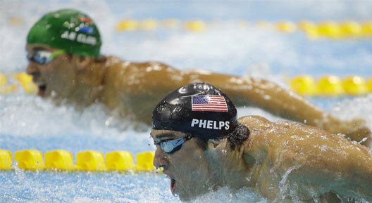 ????比賽開始后,菲爾普斯一馬當(dāng)先,一直到游到150米時仍然領(lǐng)先第二名的日本選手松田丈志0.10秒??墒?,到了最后50米沖刺,南非選手勒克洛斯后程發(fā)力,在臨近終點前超越菲爾普斯逆轉(zhuǎn)奪冠。