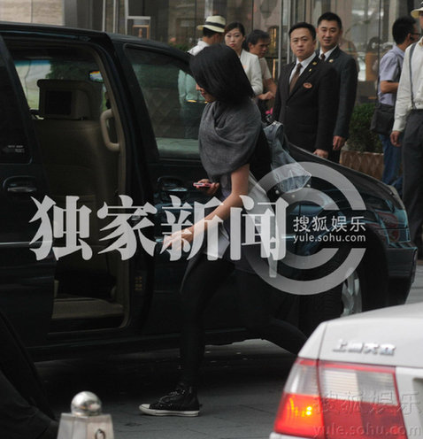蔡少芬黑衣亮相 大熱天圍披肩要風(fēng)度不懼中暑(圖)