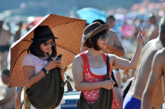 青島海濱浴場現(xiàn)人海 比基尼美女清涼養(yǎng)眼(組圖)