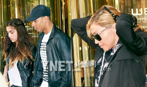 天后麥當娜與26歲小男友布拉西姆-賽巴特、大女兒羅德絲·里昂一起離開酒店時反而是小男友和大女兒出雙入對一起行走,二人看起來年齡相當似情侶一般,而倍顯蒼老的麥當娜看上去與小男友非常不登對,慘變“燈泡”黑面緊隨,一臉不悅非常明顯。