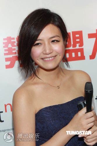 陳妍希一襲藍(lán)色抹胸亮相臉如小熊貓 否認(rèn)愛(ài)上文章(圖)