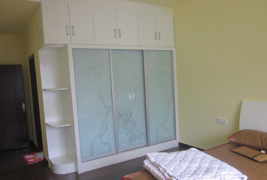 主臥衣柜,最開始是沒打算做衣柜和床的,只準備做基本裝修,通水電和墻漆,但是后來是二叔大老遠從豐都過來給我們監(jiān)工把關,結果沒什么需要他們做的話會不好意思,所以家里所有的木工活全給二叔做了,我不懂好壞,但是我很滿意,因為他真的很用心,家里做了那么多衣柜床什么的,全是他一點一點和我們確認做好的。自己做的,就算樣式差點,但是至少都是實木的,而且耐用。衣柜滑門他說鎮(zhèn)上的不好,也是大老遠