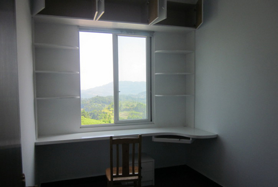我的書(shū)房,因?yàn)槲沂窃诩依镛k公的,一天有十個(gè)小時(shí)都守著電腦,所以書(shū)房對(duì)我來(lái)說(shuō)很重要,家里的家俱是做木匠的二叔打的,我喜歡書(shū)房寬闊一點(diǎn),視野好一些,后面的空地有來(lái)自己做做廣播體操練習(xí)一下瑜珈減肥什么的,準(zhǔn)備過(guò)段時(shí)間手里寬松一些再添張休閑沙發(fā),可以在自己的空間里睡個(gè)午覺(jué)什么的。除了這一面書(shū)桌和上面的小柜子,后面就是純空的了,椅子也還沒(méi)添,沒(méi)錢了,能省則省,先用一把舊椅子,臺(tái)式機(jī)也沒(méi)
