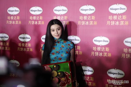范冰冰大錢穩(wěn)賺小錢不拒 穿牡丹旗袍賣月餅(組圖)