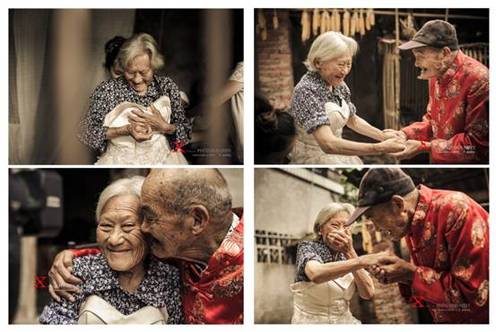 他們是仁壽人,大爺104歲,婆婆100歲,他們結(jié)婚81年卻從未有過一張照片!當(dāng)為婆婆穿上婚紗后,大爺主動(dòng)伸手抱婆婆,還喊著要去換衣服把自己打扮成小伙子,嘴里不停的說著老伴乖、漂亮。(via成都商報(bào))