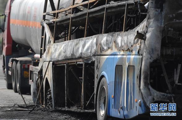 圖為包茂高速陜西延安境內(nèi)發(fā)生的特大交通事故現(xiàn)場(8月26日攝)。